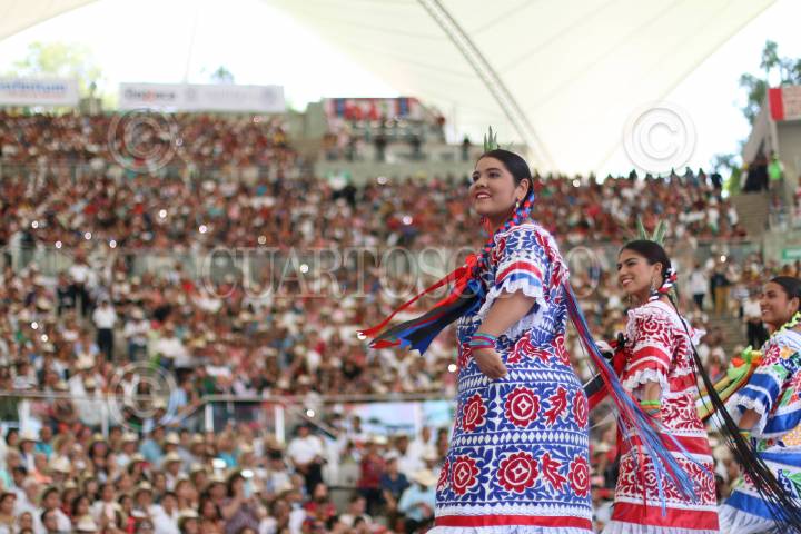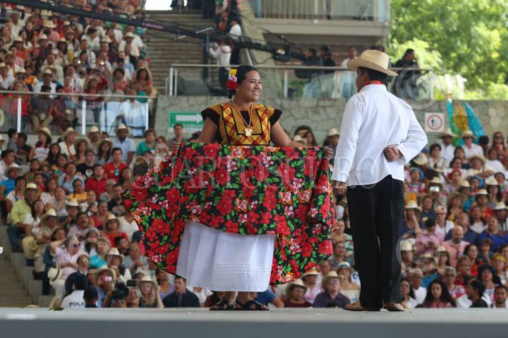 OAXACA, OAXACA, 23JULIO2018.- En punto de las 10 horas dio inicio la primera edición de la Guelaguetza 2018, fiesta encabezada por la representación de la Diosa Cénteotl, Francisca Pérez Bautista, el gobernador del estado, Alejandro Murat y su esposa Ivette Morán de Murat presidenta honoraria del Sistema DIF Estatal. Esta edición inició por primera ocasión con la Danza de la Pluma presentada por Teotitlán del Valle, seguido de San Melchor Betaza. FOTO: ARTURO PÉREZ ALFONSO/ CUARTOSCURO.COM