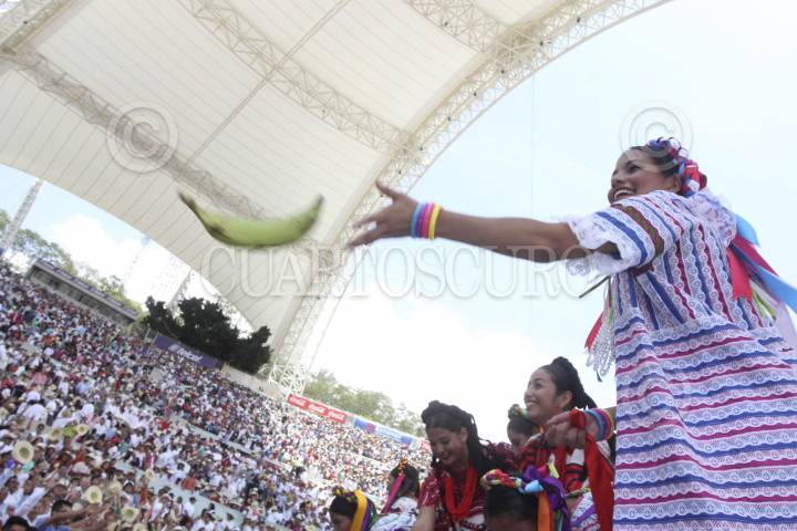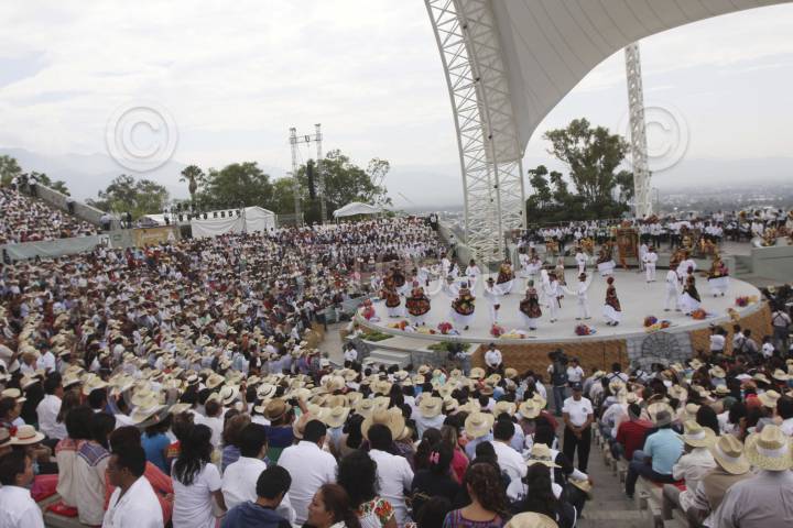 OAXACA, OAXACA, 29JULIO2013.- Este lunes se realizó la octava del Lunes del Cerro en el auditorio Guelaguetza, en el que se presentaron un total de 30 delegaciones provenientes del mismo número de comunidades, mostrando las costumbres y tradiciones de las diversas etnias de Oaxaca. FOTO: ARTURO PÉREZ ALFONSO /CUARTOSCURO.COM