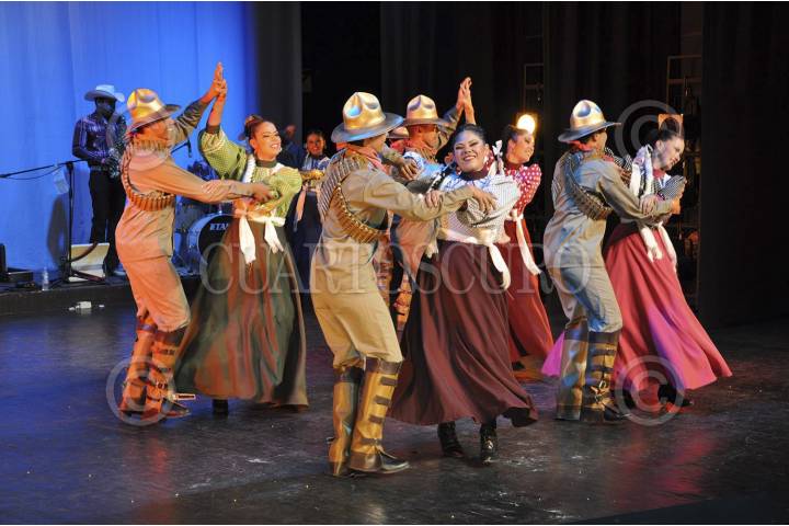 CHILPANCINGO, GUERRERO, 09MAYO2016.- El grupo de danza del Cebtis 134 ejecutó sones Chiapanecos en el Teatro del Pueblo, ubicado en los terrenos de la Feria en la colonia Los Ángeles, durante el Festival del Pozole y el Mezcal. FOTO: JOSÉ I. HERNÁNDEZ /CUARTOSCURO.COM