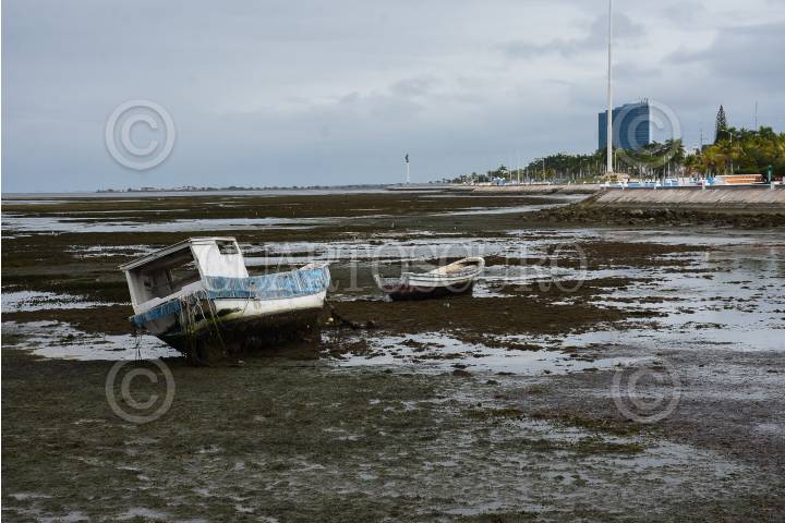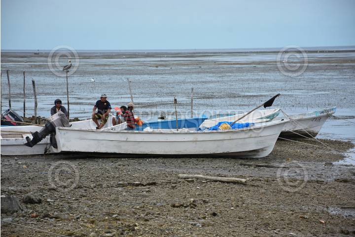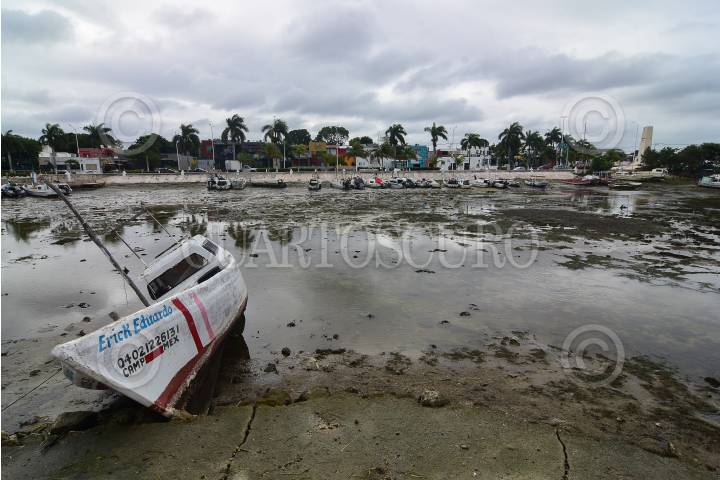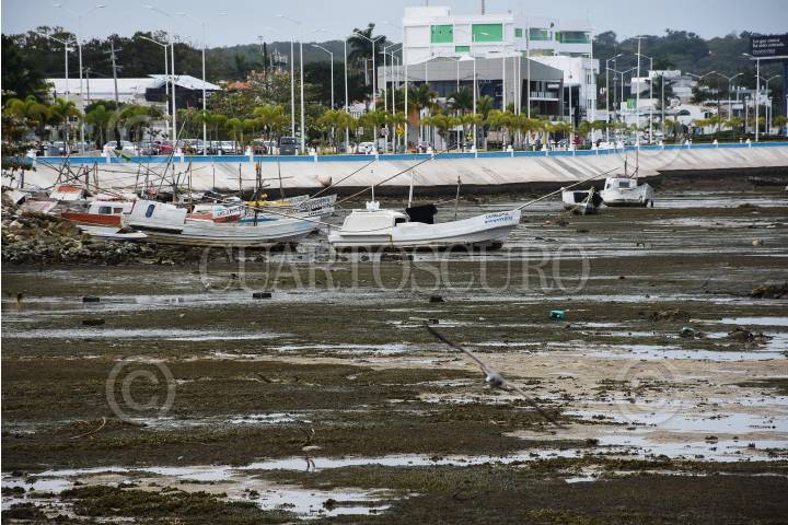 Embarcaciones ribereñas han quedado varadas debido al fenómeno Bajamar, el cual sucede cuando la luna se encuentra más cerca de la tierra.