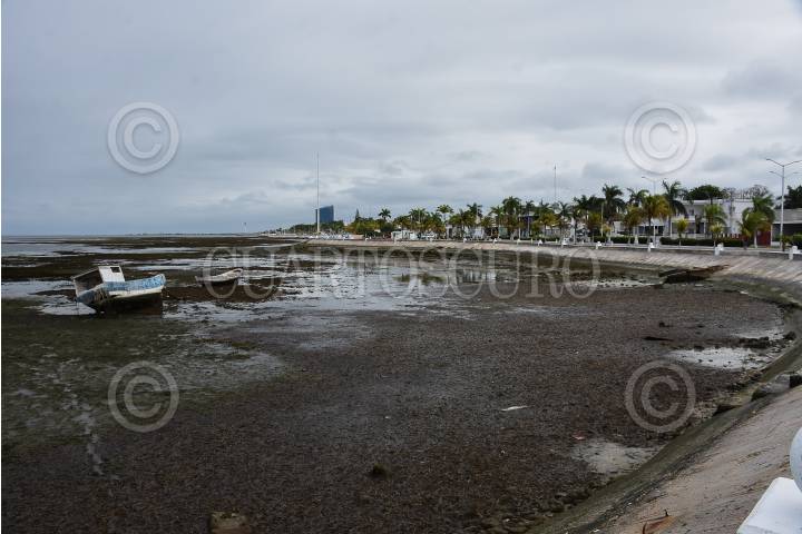 CAMPECHE, CAMPECHE 13 DE ENERO 2024.- Gran parte del malecón de Campeche se pudo observar una vaciante, mejor conocido como bajamar un fenómeno natural que se da por los cambios periódicos del nivel del mar que se producen por las fuerzas gravitacionales del sol y la luna. FOTO: MICHAEL BALAM/CUARTOSCURO.COM