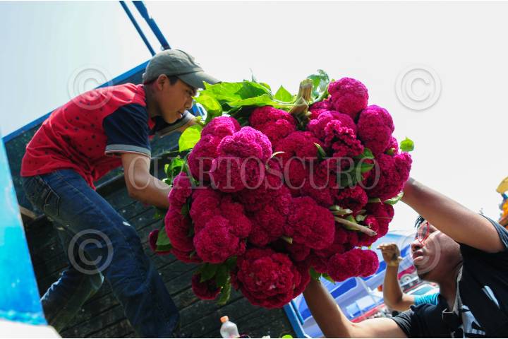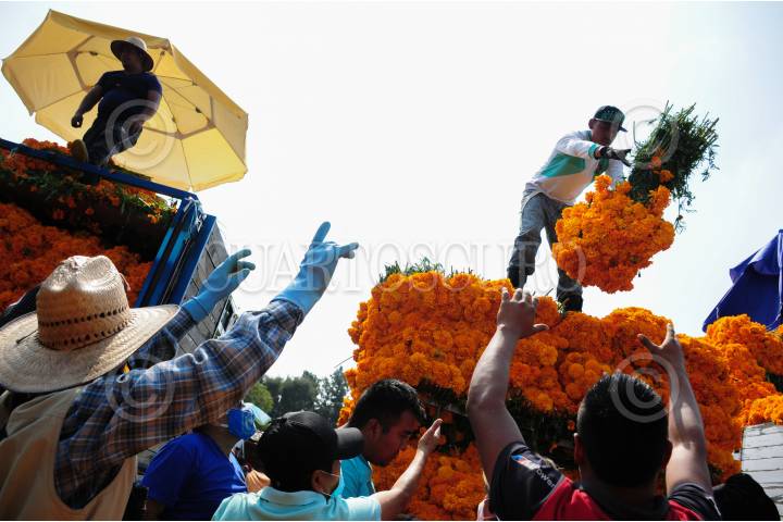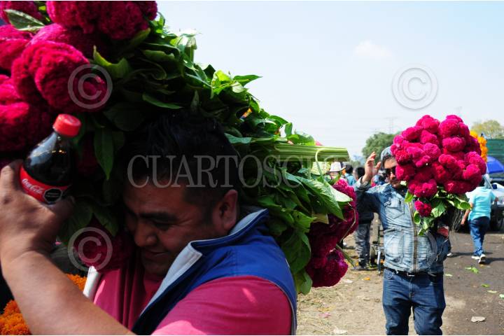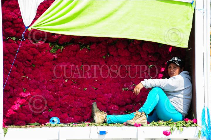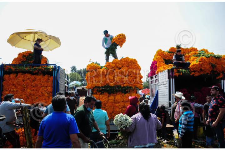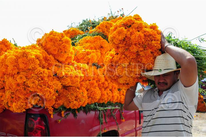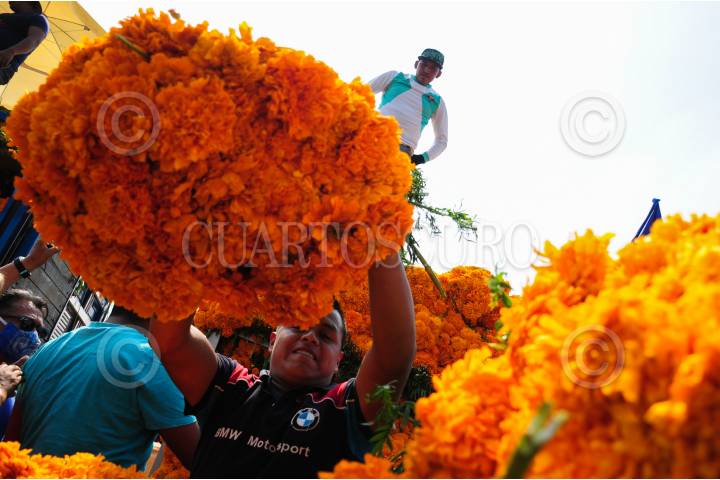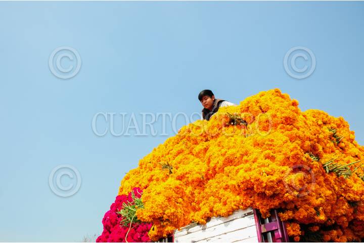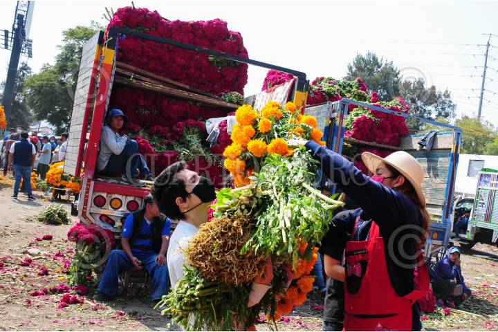 Campesinos y floriculturistas transportan la flor de cempasúchil a la Central de Abasto.