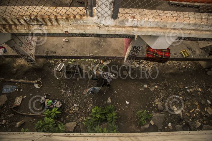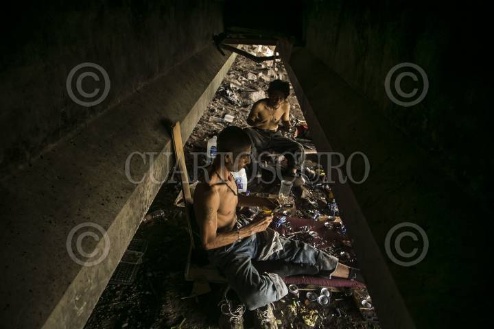 CULIACÁN, SINALOA, 26AGOSTO2015.- José originario del puerto de Veracruz y Oscar de Chiapas, se refugian abajo del puente Humaya el cual, lo han adoptado como su hogar por varios días en lo que dura su estancia en la ciudad; para ganar unos cuantos pesos, realizan trabajos de reciclado con latas que se encuentran en la calle que al final adoptaran la forma de una rosa, ellos no venden, solamente piden cooperación con alguna moneda, alimento o ropa que ayudara a seguir su camino al norte del país en busca de trabajo en los campos de durazno para posteriormente intentar el sueño Americano. Debido a la falta de empleo muchas personas de distintas regiones del país deciden aventurarse en busca de mejores opciones de trabajo, como menciona Jose y Oscar ¨no es que nos guste andar así, aveces piensan que somos delincuentes o que robamos pero la situación nos obliga a salir¨. FOTO: RASHIDE FRIAS / CUARTOSCURO.COM