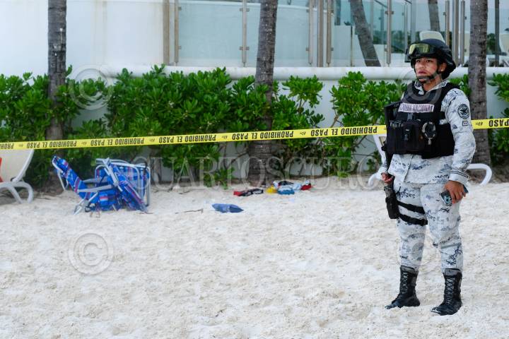 CANCÚN, QUINTANA ROO, 28JULIO2024.- El pequeño Santiago T. M. de 12 años de edad, murió esta tarde en el IMSS de la Cobá, víctima de un disparo a la altura del pecho, producto de una bala pérdida, cuando se encontraba con su familia en una playa de la zona hotelera. El lamentable hecho ocurrió poco antes de las tres de la tarde frente al hotel Riu Cancún, hasta donde llegaron autoridades de los tres órdenes de gobierno. De acuerdo con los primeros informes, el pequeño Santiago, quien era originario de la Ciudad de México, se encontraba con su familia pasando un fin de semana agradable, el cual tristemente acabó en tragedia. Todos estaban en la orilla de la playa cuando presuntamente fue alcanzado por una bala perdida, luego de que sujetos armados a bordo de motos acuáticas llegaron a la orilla de la playa y realizaron detonaciones contra un hombre a quien presuntamente intentaron ejecutar, pero logró escapar corriendo. FOTO: ELIZABETH RUIZ/CUARTOSCURO.COM