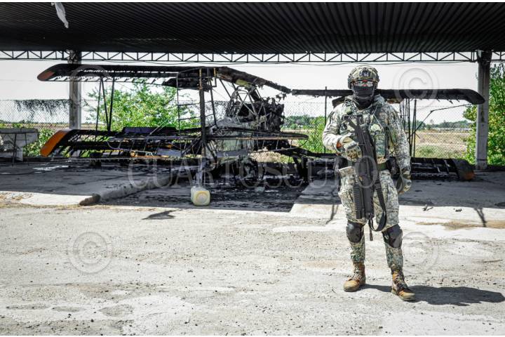 NAVOLATO, SINALOA, 26JUNIO2025.- Una avioneta Stearman de la Segunda Guerra Mundial fue destruida tras un ataque registrado la tarde de este jueves en la pista La Luna, ubicada en la sindicatura de Villa Juárez, Navolato. Sujetos armados irrumpieron en el aeródromo, abrieron fuego contra la aeronave, le prendieron fuego antes de huir con rumbo desconocido. Testigos relataron que escucharon varias detonaciones, seguidas de una explosión y el incendio de la aeronave, el saldo fue de cuantiosos daños materiales sin ninguna persona lesionada. El pasado 28 de abril ya había sido atacada a balazos el mismo aeródromo, en la cual resultó afectada otra avioneta. FOTO: JOSÉ BETANZOS ZÁRATE/CUARTOSCURO.COM