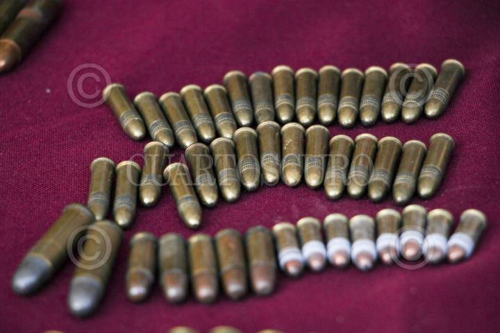 CAMPECHE, CAMPECHE, 16OCTUBRE2024.- El Décimo Batallón de Infantería de la 33 zona militar realizo la destrucción de armas de fuego que han sido aseguradas durante diferentes operativos, se destruyeron 44 armas de fuego, de las cuales 11 eran armas largas, 33 cortas, además de 36 cargadores y 576 cartuchos de distintos calibres. FOTO: MICHAEL BALAM/CUARTOSCURO.COM