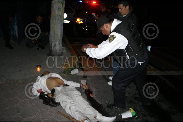 MÉXICO D.F. 24FEBRERO2007.- Un taxista de aproximadamente 30 años que en vida respondia al nombre de Jorge Saldaña Orozco fue baleado entre las calles San Marcos y San Gabriel Arcangel en la colonia Liberales de 1857 en la delegación Alvaro Obregón. FOTO: SAÚL LÓPEZ/CUARTOSCURO.COM