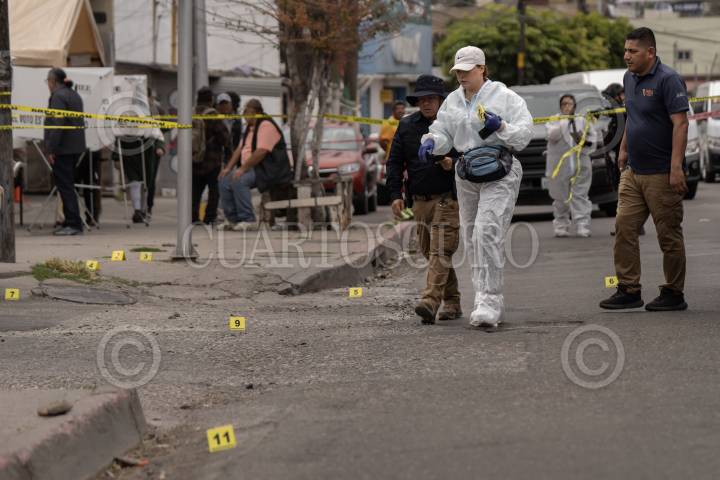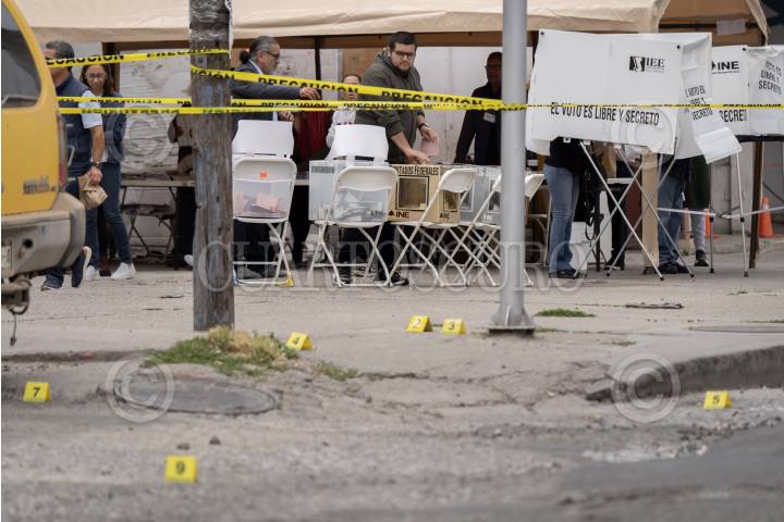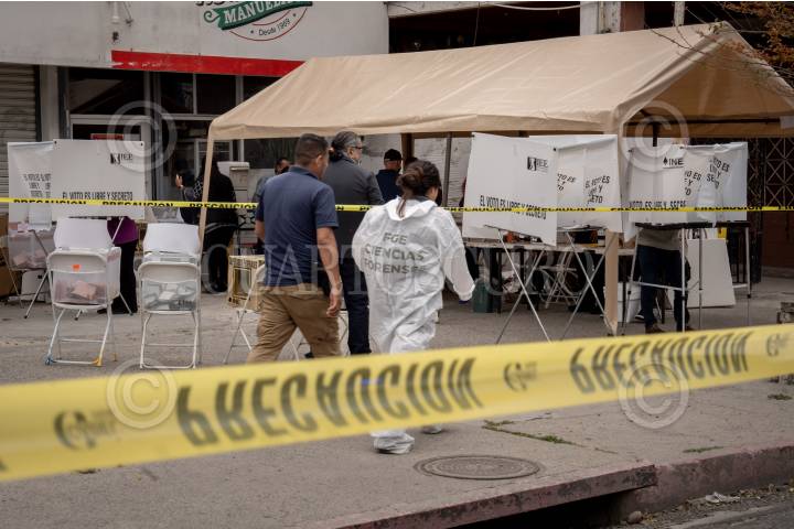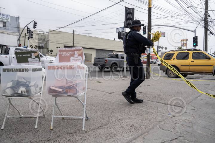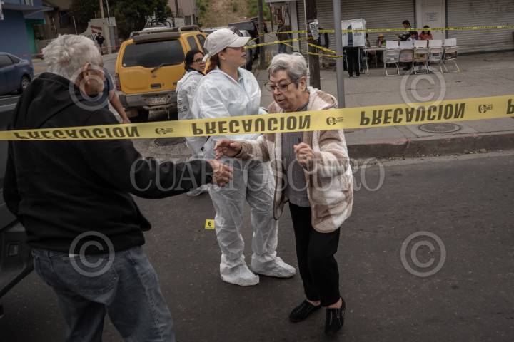 TIJUANA, BAJA CALIFORNIA, 02JUNIO2024.- Una mujer fue lesionada por proyectil de arma de fuego cerca de una casilla ubicada en el bulevar Fundadores. Los hechos se registraron aproximadamente a las 8:46 horas en la colonia El Rubí, frente a una Soriana. De acuerdo a los primeros reportes, el responsable intentó huir a pie tierra y una escolta repelió la agresión y lo lesionó. El atacante fue detenido por elementos de la Fuerza Estatal de Seguridad Ciudadana. Tras el hecho violento, la casilla continúo operando con normalidad. Una persona persona fue asegurada por autoridades estatales la cual presuntamente esta ligada con el hecho. FOTO: OMAR MARTÍNEZ/CUARTOSCURO.COM