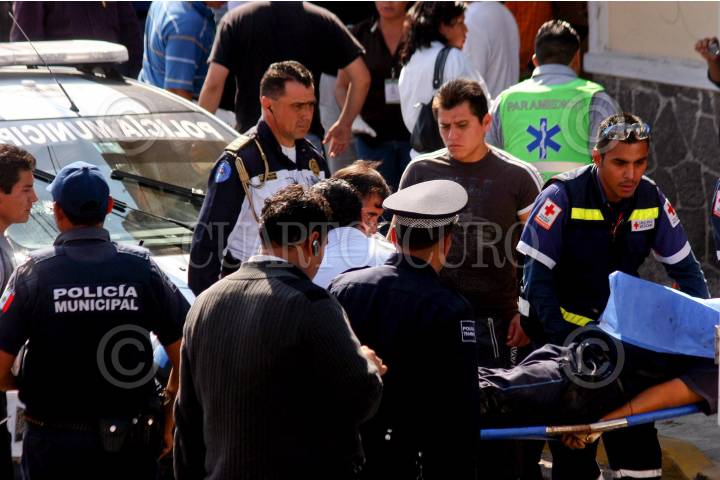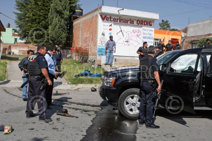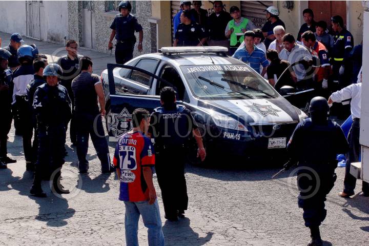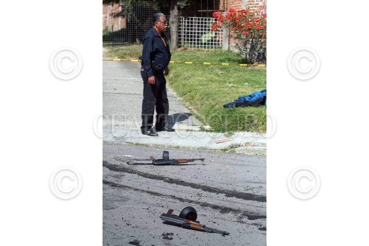 PUEBLA, PUEBLA, 10DICIEMBRE2009.- El policía municipal Juan Carlos Oropeza, fue abatido a tiros como saldo del enfrentamiento entre policías de los tres niveles de gobierno y ejército mexicano en contra de un grupo armado que aún no se ha identificado, éstos sujetos portaban armas largas y un lanza granadas dentro de una camioneta de lujo. Posteriormente trascendió que se trató de un convoy de camionetas de lujo que fueron halladas en distintos puntos de la ciudad con disparos y que podrían estar vinculados con el narcotráfico. Las primeras versiones señalan que los policías ministeriales acudieron a un reporte recibido por el centro de emergencias 066 dónde denunciaban a un grupo de hombres armados; al acudir los uniformados se enfrentaron a tiros frente a una escuela ubicada en la Colona Libertad de la Ciudad de Puebla, causando histeria y crisis nerviosas entre la comunidad estudiantil. Se emprendió una larga búsqueda por la Colonia la Libertad, La Carcaña, Cuatlancingo para asegurar a los responsables. Ninguna autoridad han dado alguna versión sobre lo sucedido. FOTO: FRANCO/CUARTOSCURO.COM