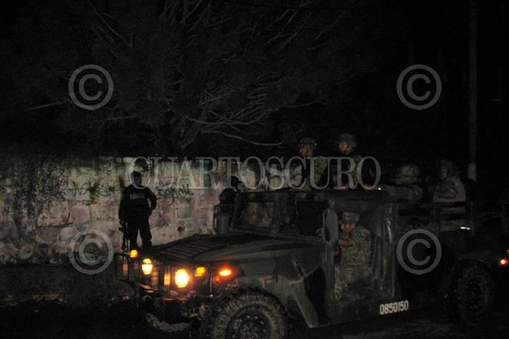 CHILPANCINGO, GUERRERO, 20SEPTIEMBRE2010.- Una balacera entre presuntos sicarios del crimen organizado y efectivos del ejercito mexicano se registro la noche de este domingo entre las colonias El Tomatal y Almolonga, dejando como saldo un presunto sicario muerto y tres efectivos del ejercito mexicano heridos de gravedad y el decomiso de 5 camioneta de lujo abandonadas, cientos de cartuchos utiles, rifles AK-47 (cuernos de chivo) y varias granadas. FOTO: OSCAR ALVARADO/CUARTOSCURO.COM