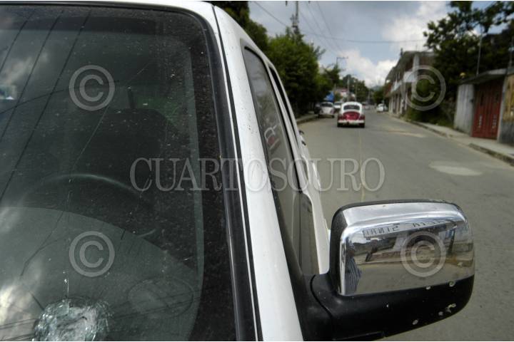 ACAPULCO, GUERRERO, 09OCTUBRE2010.- Tres vehículos fueron baleados entre ellos una camioneta con rastros de sangre, fueron encontradas en una colonia de este destino turístico, informaron autoridades de seguridad estatal y municipal. Vecinos reportaron la presencia de los vehículo sobre la calle principal de la Colonia Sinaí, cerca de la Colonia Emiliano Zapata, sin embargo, señalaron que desde la madrugada fueron abandonados, de acuerdo con el parte policíaco. La camioneta, con placas HAK-4323 del Estado de Guerrero, se rastrea en Plataforma México para saber a nombre de quién está. FOTO: BERNANDINO HERNÁNDEZ/CUARTOSCURO.COM