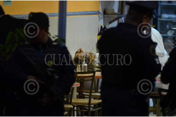 MÉXICO, D.F., 04AGOSTO2015.- Una mujer perdió la vida de un tiro en la cara la noche de ayer al interior de una taqueria con razón social "El negro", ubicado en la en la calle Félix Parra, entre Río Mixcoac y la calle de los Juárez. A unas calles fue localizada una motocicleta donde se presume huyeron los agresores. FOTO: LUIS CARBAYO /CUARTOSCURO.COM