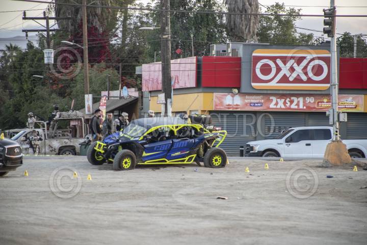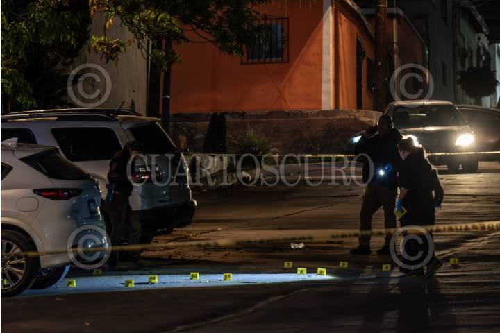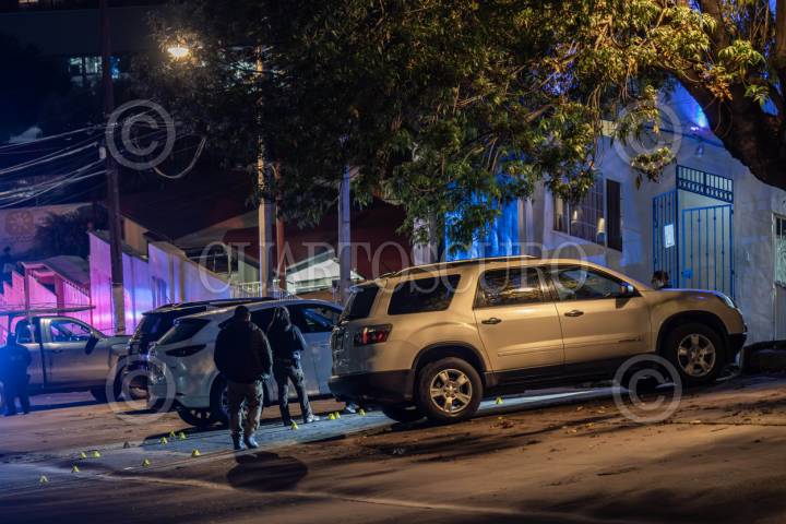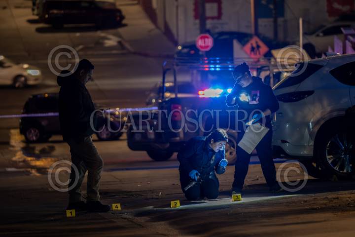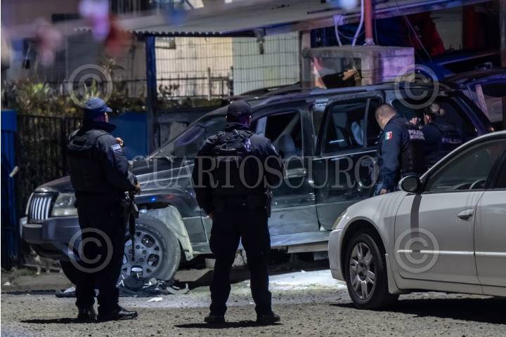 TIJUANA BAJA CALIFORNIA, 03JULIO2024.- Durante esta tarde en la colonia Guadalupe Victoria, sobre la calle Álvaro Obregón y la Vía Rápida con dirección a Zona Río, se registró un ataque armado en contra de una familia que iba a bordo de un vehículo. Autoridades policíacas arribaron al lugar y encontraron al interior de un taller municipal ubicado sobre la calle Álvaro Obregón una camioneta Suburban de color blanco con impactos de arma de fuego y a 2 hombres y 1 una mujer lesionados por disparos de arma de fuego. Paramédicos de la cruz roja arribaron para brindar los primeros auxilios a los lesionados y trasladarlos hacia un hospital en estado grave para continuar con su atención médica en compañía de una menor quien también viajaba en la camioneta y resultó ilesa. Según información extraoficial los responsables huyeron por la vía rápida Oriente a bordo de un vehículo Jeep Cherokee de color gris. El ataque armado fue contrarrestado por los escoltas de la familia, quienes se enfrentaron a los agresores, sobre la calle quedaron varios indicios balísticos. Elementos de diferentes corporaciones policíacas desplegaron un fuerte operativo en las zonas aledañas al ataque para buscar a los responsables. La zona quedó resguardada por elementos de la policía municipal, mientras que agentes de la fiscalía y servicios periciales realizaban las investigaciones correspondientes. FOTO: OMAR MARTÍNEZ/CUARTOSCURO.COM