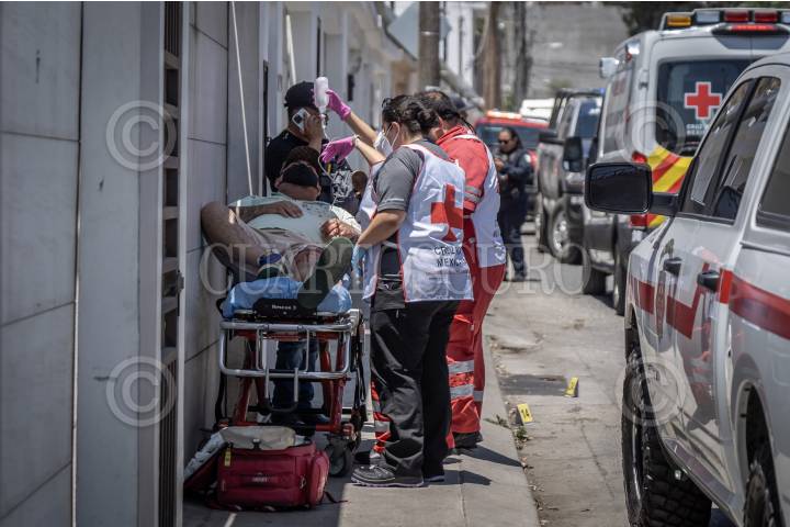 TIJUANA BAJA CALIFORNIA, 22MAYO2024.-Dos hombres fueron atacados por disparos de arma de fuego a las afueras de un domicilio durante la noche del martes 21 de Mayo. Paramédicos de la Cruz Roja llegaron al lugar para atender a las víctimas, declarando sin vida a uno de ellos y trasladando a un hombre de la tercera edad hacia un hospital en condición amarilla. Según testigos señalaron, los presuntos responsables, dos hombres de edad joven y vestimenta oscura que huyeron en dirección hacia el canal, sin ser detenidos. Los hechos ocurrieron sobre la calle Alfonso López Mateo, esquina con Avenida Miguel Alemán en la colonia Infonavit Presidentes. FOTO: OMAR MARTÍNEZ/CUARTOSCURO.COM