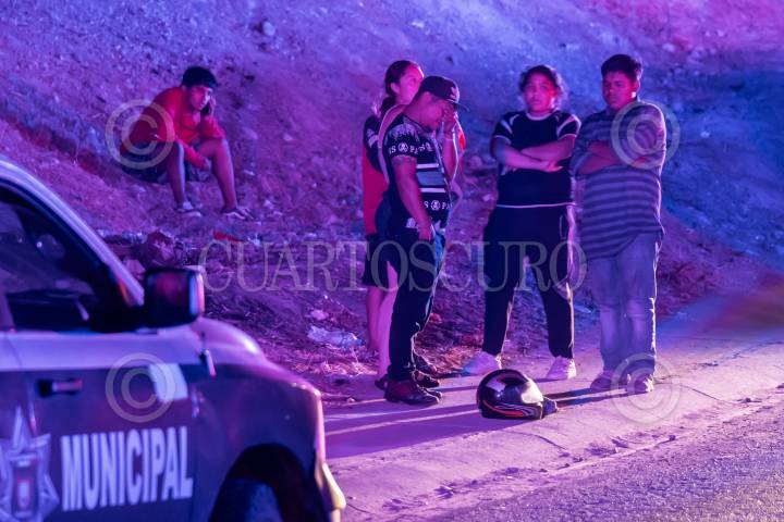 TIJUANA BAJA CALIFORNIA, 09JULIO2024.- Un ataque armado registrado la noche del martes 9 de julio en la colonia Laurel 1, dejó el saldo de un menor de 11 años herido de gravedad. De acuerdo a información extraoficial, el niño de 11 años, viajaba a bordo de una motocicleta acompañado de su primo, cuando un sujeto armado de vestimenta oscura comenzó a dispararles en repetidas ocasiones. Paramédicos de la Cruz Roja llegaron a la venida Circuito de los Carlos y calle René para atender el reporte de una persona lesionada, encontrando al menor con una herida de bala en la parte alta de la espalda del lado derecho, trasladándolo en estado crítico a un hospital. Minutos después, el primo del lesionado, quien tiene 13 años de edad y presuntamente iba manejando la moto, llegó a la escena, confirmando la versión del otro menor de 11 años. En el lugar de los hechos donde se encontró al lesionado no se encontraron indicios balísticos, únicamente quedó un casco de motociclista. FOTO: OMAR MARTÍNEZ/CUARTOSCURO.COM
