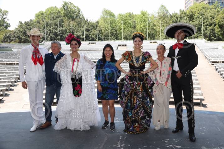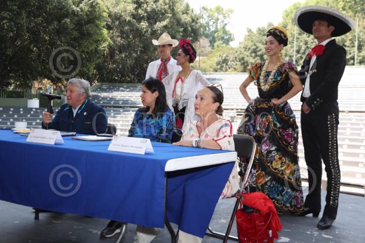 CIUDAD DE MÉXICO, 13MARZO2024. Salvador López López director del BFM, Anabel Caballero Marín directora de convivencia y cultura de la alcaldía Miguel Hidalgo y Viviana Bansanta Hernández, directora artística del BFM durante la conferencia de prensa donde el Ballet Folklórico de México de Amalia Hernández presentará una gala especial en el Teatro Ángela Peralta en Semana Santa. FOTO: EDGAR NEGRETE LIRA/CUARTOSCURO.COM