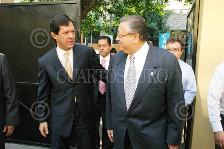 MÉXICO D.F. 09MAYO2006.- El candidato del partido Nueva Alianza a la presidencia, Roberto Campa fué recibidó por Enrique Aguilar Borrego, secretario General de la Federación Nacional de Sindicatos Bancarios. FOTO: Diego Gallegos/CUARTOSCURO.COM