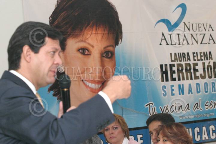 MÉXICO D.F. 09MAYO2006.- Laura Elena Herrejón, candidata de Nueva Alianza al senado, durante la reunión con el candidato del partido Nueva Alianza a la presidencia, Roberto Campa en las instalaciones de la Federación Nacional de Sindicatos Bancarios. FOTO: Diego Gallegos/CUARTOSCURO.COM