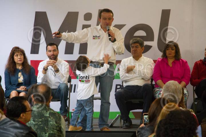 CIUDAD DE MEXICO, 05MAYO2018.- Mikel Arriola candidato del PRI a la jefatura del Gobierno de la Ciudad, junto con su hijo Santiago Arriola, se reunieron con empleados bancarios en su sede de la Colonia del Valle. FOTO: VICTORIA VALTIERRA /CUARTOSCURO.COM