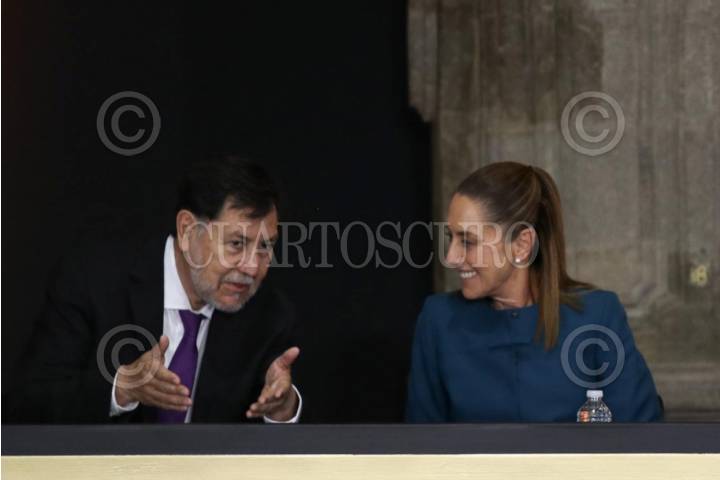 CIUDAD DE MÉXICO, 25AGOSTO2025.- Gerardo Fernández Noroña, presidente del Senado de la República; Edgar Amador Zamora, secretario de Hacienda y Crédito Público; Claudia Sheinbaum, presidenta de México; Victoria Rodríguez Ceja, gobernadora del Banco de México; Rosa Isela Rodríguez, secretaria de Gobernación, y Sergio Luna, presidente de la Cámara de Diputados, participaron en el evento conmemorativo de 100 Aniversario de la Fundación del Banco de México realizado en el Museo Interactivo de Economía FOTO: GRACIELA LÓPEZ/CUARTOSCURO.COM