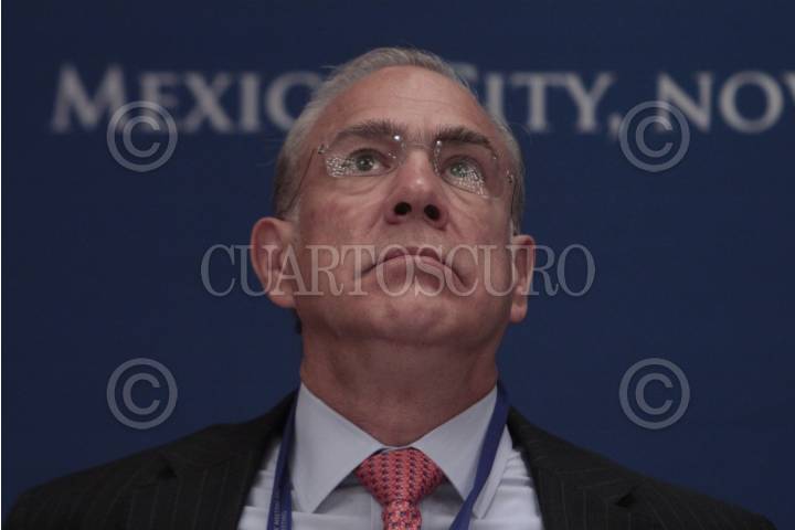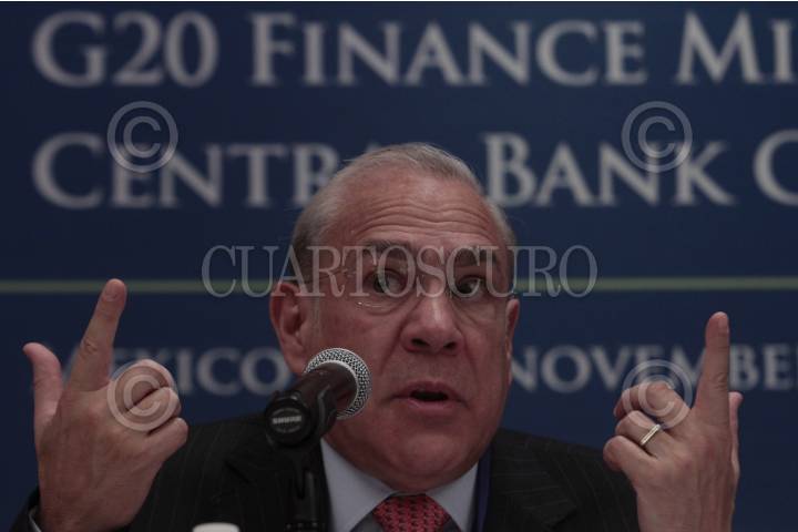 MÉXICO, D.F., 04NOVIEMBRE2012.-Jose Angel Gurria, Secretario General de la OCDE durante la conferencia ante los medios de comunicación sobre el aumento de la fortaleza financiera a traves del manejo de desastres. FOTO: ENRIQUE ORDÓÑEZ /CUARTOSCURO.COM