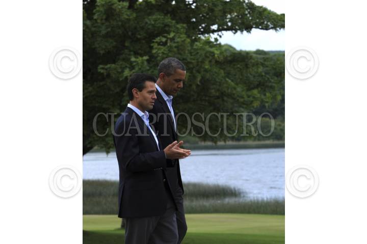 LOUGH ERNE, IRLANDA DEL NORTE, 18JUNIO2013.- El presidente de México, Enrique Peña Nieto, asistió en calidad de invitado especial a la XXXIX Reunión Cumbre del Grupo de los Ocho (G-8) que integran los líderes de las principales economías del mundo: Alemania, Estados Unidos, Canadá, Francia, Italia, Japón, Reino Unido y Rusia; junto con los mandatarios de Liberia, Senegal, Etiopia y Libia; además de los dirigentes del Banco Mundial, el Fondo Monetario Internacional y la Organización para la Cooperación y Desarrollo Económicos. FOTO: PRESIDENCIA /CUARTOSCURO.COM