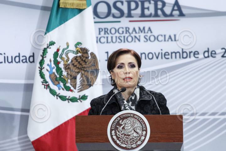 MÉXICO, D.F., 19NOVIEMBRE2014.- Rosario Robles, titular de la Sedesol, durante la firma del convenio mediante el cual, el Banco Mundial prestará a México 350 millones de dólares para apoyar el principal programa social federal "Prospera" FOTO: ISAAC ESQUIVEL /CUARTOSCURO.COM