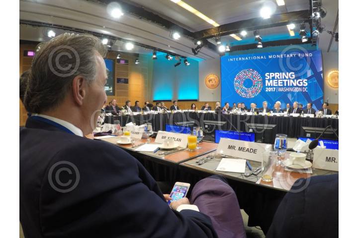WASHINGTON, DC, ESTADOS UNIDOS, 20ABRIL2017.- En su primer día de actividades en las Reuniones de Primavera del Banco Mundial (BM) y el Fondo Monetario Internacional (FMI), el secretario de Hacienda y Crédito Público, José Antonio Meade Kuribreña, participó en la reunión de ministros de Finanzas y gobernadores de Bancos Centrales del G-20. Durante su intervención como orador principal, explicó que México ha desarrollado con éxito un ambicioso conjunto de reformas estructurales que se ha traducido en más empleos, mejores ingresos y en un creciente dinamismo económico. Esta agenda nacional, sostuvo, es congruente con las prioridades que el G-20 ha propuesto a sus integrantes para estimular un crecimiento económico sólido, sostenible y equilibrado. FOTO: SHCP /CUARTOSCURO.COM