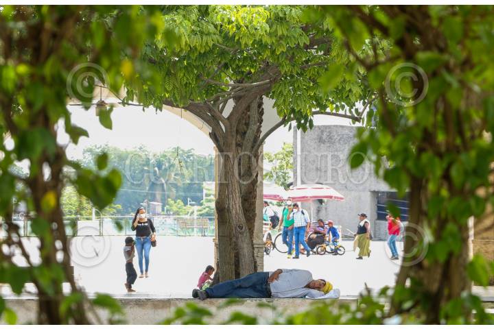 Un hombre en situación vulnerable duerme en un espacio público del estado de Tabasco.