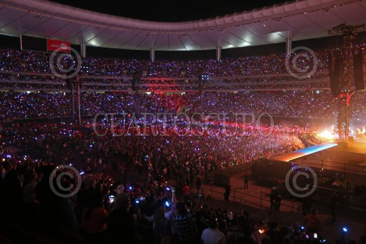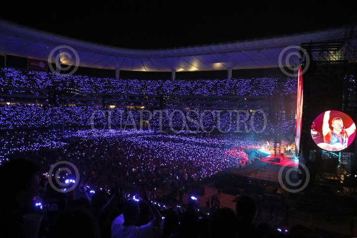 Aspectos del concierto de la banda británica de rock, Coldplay, quien se presento esta noche en el Estadio Akron.