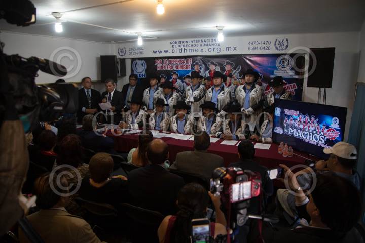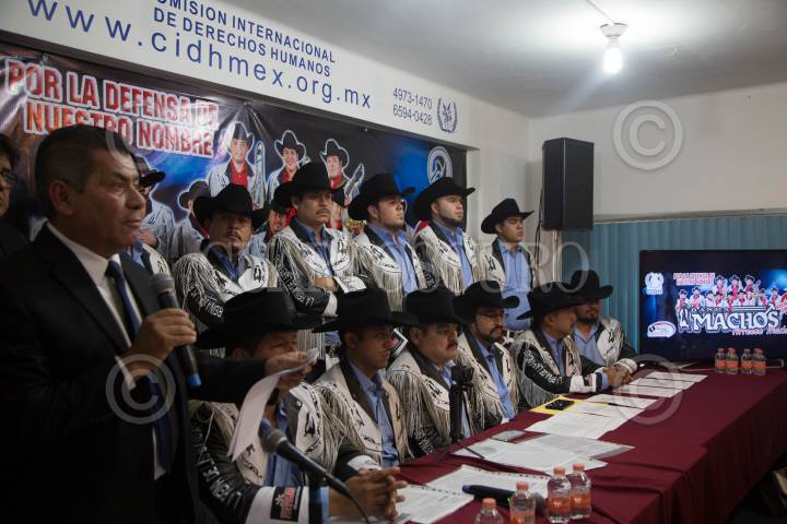 CIUDAD DE MÉXICO, 06DICIEMBRE2018.- La emblemática Banda Machos ofreció una rueda de prensa en instalaciones de la Comisión Nacional de Derechos Humanos (CNDH) para denunciar amenazas de muerte que presuntamente han surgido a raíz de ganar una demanda contra integrantes de la Banda Mach por robo de identidad. FOTO: ILSE HUESCA /CUARTOSCURO.COM