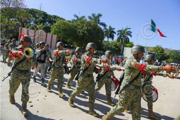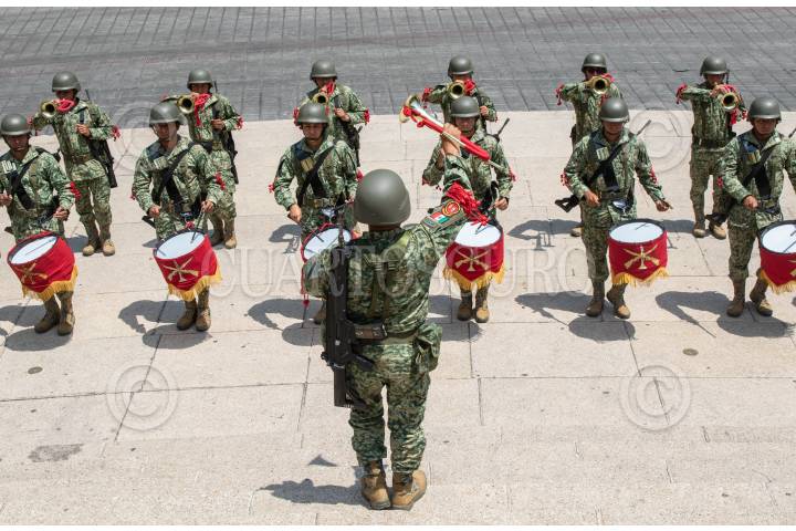 CIUDAD DE MÉXICO, 12SEPTIEMBRE2023.- Banda militar de la SEDENA en avenida Reforma. FOTO: MOISÉS PABLO/CUARTOSCURO.COM