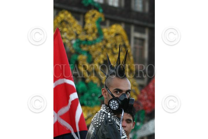 MÉXICO,D,F.,02OCTUBRE2007.- Punk´scon banderas de anarquismo, se plantan en la plancha del zócalo. FOTO:SASHENKA GUTIERREZ/CUARTOSCURO.COM