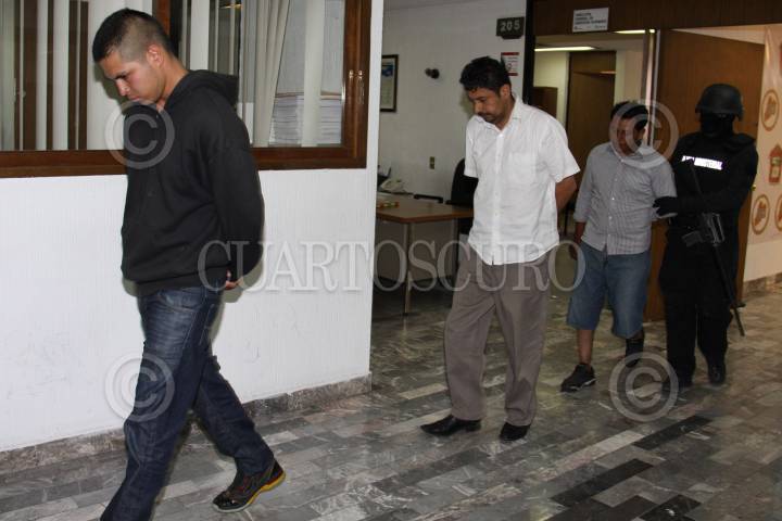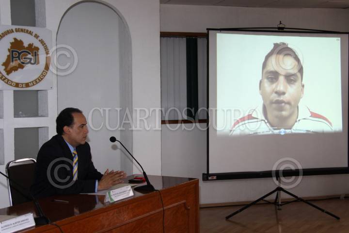 MÉXICO, D.F., 16AGOSTO2010.- Derivado de los trabajos de inteligencia efectuados por elementos de la Policía Ministerial de la Procuraduría General de Justicia del Estado de México (PGJEM), se logró asegurar a cinco integrantes de una organización delictiva dedicada al robo de vehículos, transeúntes y negocios, según se asienta en la averiguación previa SAE/III/19/2010, pero además ya se preparaban para robar bancos. Estos sujetos reconocieron a José Daniel Sánchez Hernández alías “El Gordo”, como líder de la banda, señalando que delinquían principalmente en el Distrito Federal y Ecatepec, y otros municipios de la zona oriente de la entidad y en su haber tenían más de 15 ilícitos cometidos. Así y como resultado de un operativo en el municipio de Ecatepec fueron asegurados José Daniel Sánchez Hernández “El Gordo”, de 23 años de edad; Miguel Estrada Román, “El Miguel”, de 31; Alberto De Olmos Bautista “El Alberto”, de 27; Miguel Ángel Jaso Rosillo, “El Miguel” de 38 años, y Martín Cruz Cuenca de 47 años, relacionados con los delitos de de delincuencia organizada, portación de arma de fuego y robo. FOTO: LUIS CARBAYO/CUARTOSCURO.COM
