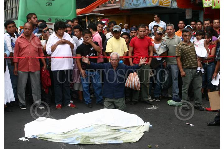 MÉXICO, D.F., 28AGOSTO2009.- Gran descontento entre comerciantes causo la muerte de una señora de la tercera edad que fue atropellada en el cruce de la calle San Pablo y Circunvalacion en la colonia Merced Balbuena. Los molestos vendedores bloquearon la avenida Circunvalacion y agredieron a una camioneta de militares que circulaban por el lugar. FOTO: SAÚL LÓPEZ/CUARTOSCURO.COM
