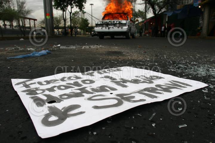 MÉXICO, D.F., 28AGOSTO2009.- Gran descontento entre comerciantes causo la muerte de una señora de la tercera edad que fue atropellada en el cruce de la calle San Pablo y Circunvalacion en la colonia Merced Balbuena. Los molestos vendedores y familiares bloquearon la avenida Circunvalación y amenazaron con quemar el microbus. FOTO: SAÚL LÓPEZ/CUARTOSCURO.COM