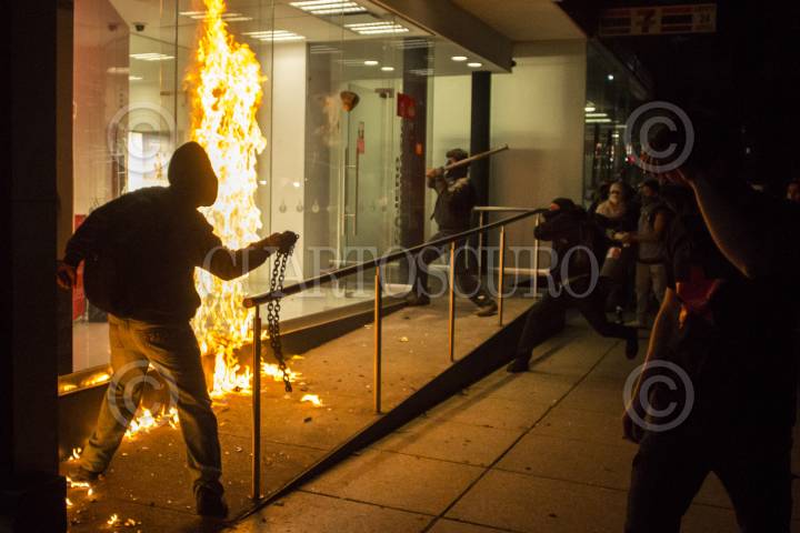 MÉXICO, D.F., 01DICIEMBRE2014.- Jóvenes encapuchados, realizaron destrozos de comercios y bancos sobre la avenida Florencia y Paseo de la Reforma rompiendo vidrios e incendiándolos. FOTO: ENRIQUE ORDÓÑEZ /CUARTOSCURO.COM