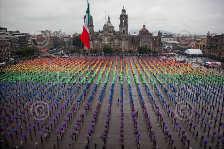 CIUDAD DE MÉXICO, 22JUNIO2025.- Aspecto de la Instalación de la Bandera LGBTTTIQ+ la más grande del mundo que se instaló en la Plancha del Zócalo. FOTO: ANDREA MURCIA /CUARTOSCURO.COM