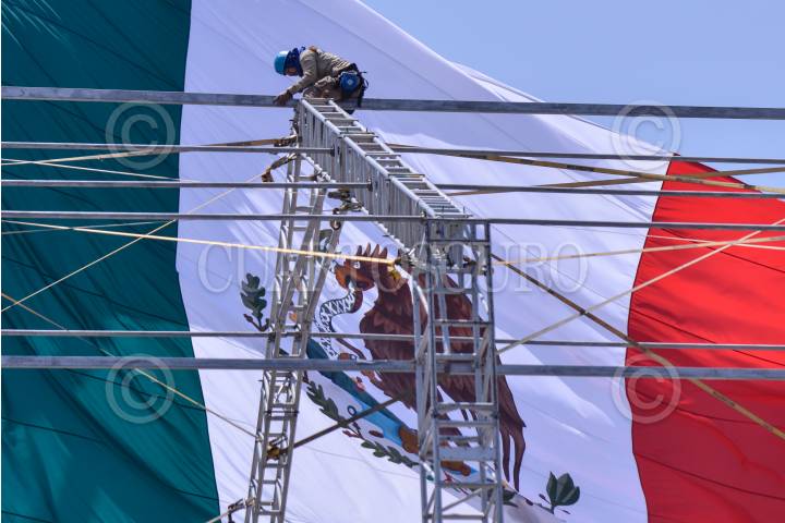 CIUDAD DE MÉXICO, 02FEBRERO2024.- El próximo 24 de febrero se conmemorará el Día de la bandera el cual fue establecido en 1934, año en el que se aprobó la primera legislación sobre los símbolos patrios. En imagen aspectos de la bandera de la Glorieta de San Jerónimo. FOTOS: ROGELIO MORALES /CUARTOSCURO.COM