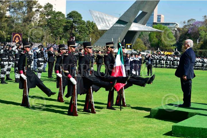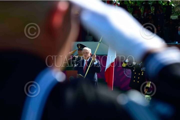 Andrés Manuel López Obrador, presidente de México encabezó la Ceremonia Conmemorativa al “Día de la Bandera”, en el Campo Deportivo Militar “Marte”.