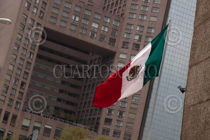 Bandera de México ondea en avenida Reforma, en la zona hotelera.