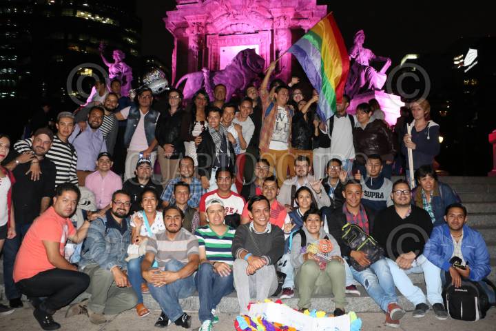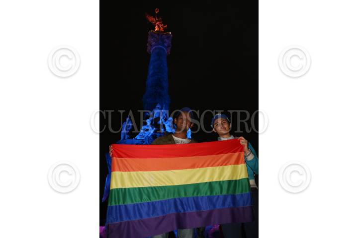CIUDAD DE MÉXICO, 24JUNIO2016.- Iluminaron el ángel de la indepencia con los colores de la bandera del movimiento del Orgullo LGBTTTI, como parte de las celebración de la XXXVII marcha del orgullo gay. FOTO: SAÚL LÓPEZ /CUARTOSCURO.COM