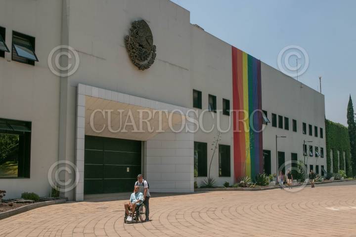 El edificio de la Secretaría de Relaciones Exteriores colocó la bandera multicolor que representa a la comunidad LGBTTTIQ.