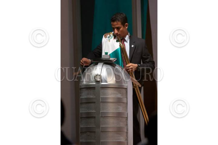 MÉXICO, D.F. 17SEPTIEMBRE2012.-Un guardia del Estado Mayor desmonta la Bandera Nacional utilizada en una ceremonia oficial. FOTO: JUAN PABLO ZAMORA /CUARTOSCURO.COM