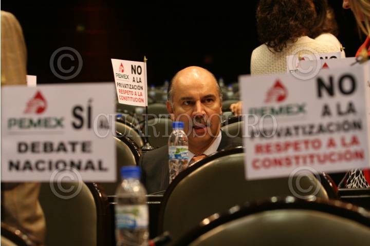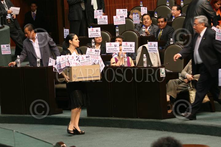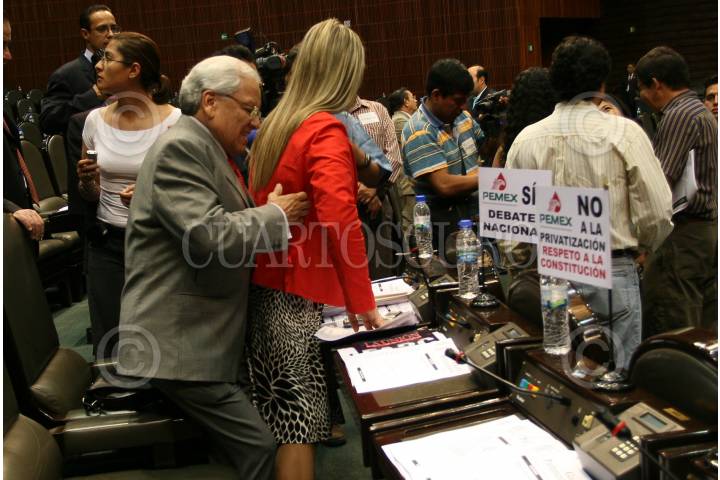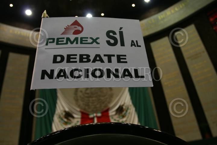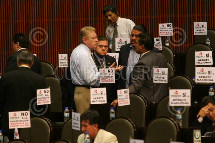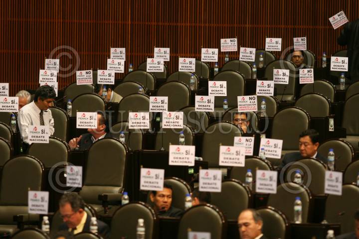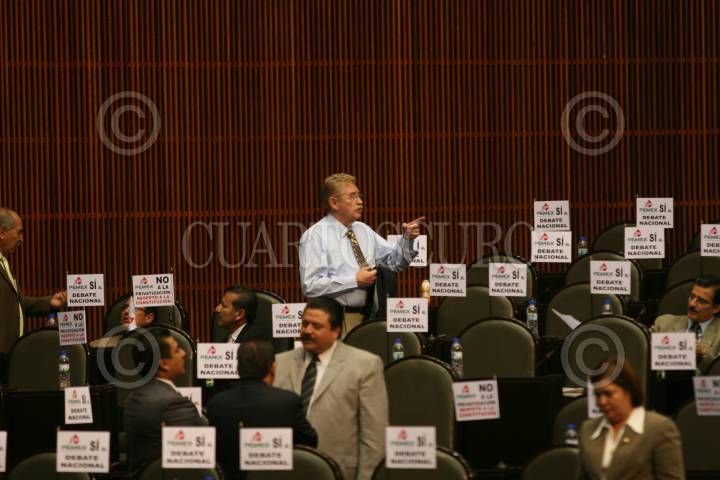 MÉXICO D.F. 08ABRIL2008.-Sesión en la Cámara de Diputados.En la imagen uno de los banderines con la leyenda "PEMEX Sí al Debate Nacional". FOTO: GUILLERMO PEREA /CUARTOCURO.COM