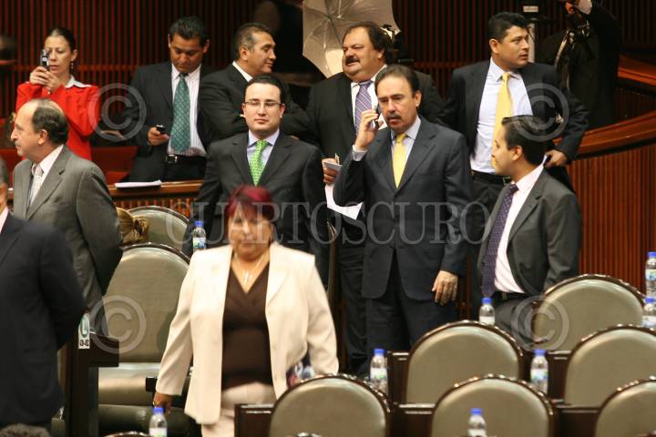 MÉXICO D.F. 08ABRIL2008.-Sesión en la Cámara de Diputados.El diputado del PRD, Javier Gónzalez Garza, dailoga con diputados de su mismo partido durante la sesión. FOTO: GUILLERMO PEREA /CUARTOCURO.COM