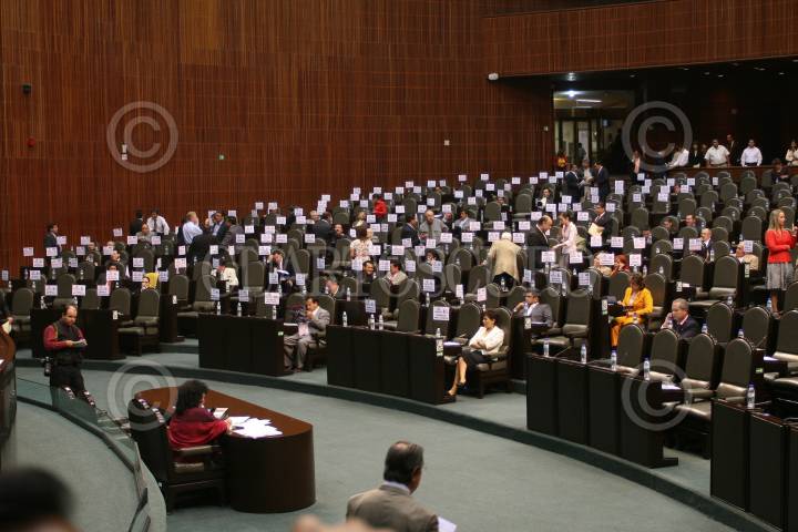 MÉXICO D.F. 08ABRIL2008.-Sesión en la Cámara de Diputados.En la imagen las curules de los diputados del PRD tinene los banderines con las leyendas alucibas a PEMEX.FOTO: GUILLERMO PEREA /CUARTOCURO.COM