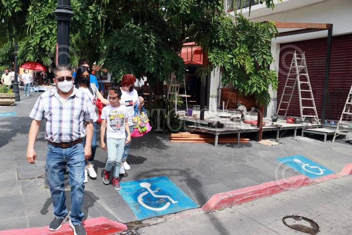 Restaurante reduce uso de banqueta a los peatones al ampliar sus instalaciones.