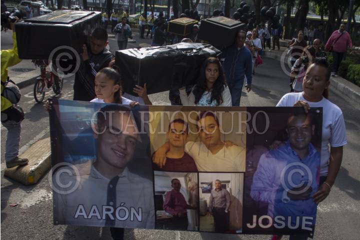 MÉXICO, D.F., 26MAYO2014.- Familiares y amigos de los jóvenes secuestrados y muertos presuntamente por parte de un ajuste de cuentas entre narcomenudistas de Tepito, realizaron una marcha del Ángel de la Independencia al Bar en la zona rosa donde montaron unos ataúdes de cartón y colocaron veladoras y aventaron globos en el 1 aniversario del secuestro. FOTO: ENRIQUE ORDÓÑEZ /CUARTOSCURO.COM