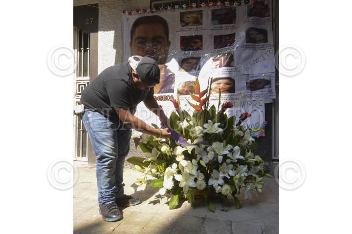 MÉXICO, D.F., 26MAYO2015.- Familiares y amigos de los jóvenes que fueron levantados del Bar Heaven colocaron una ofrenda floral para recordarlos a dos años del suceso. FOTO: ARMANDO MONROY /CUARTOSCURO.COM
